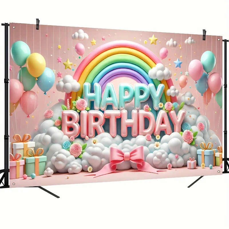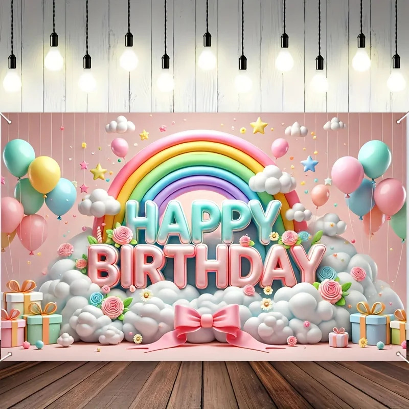 لافتة خلفية لعيد الميلاد السعيد، قطعة واحدة مزينة بالونات ثلاثية الأبعاد وتصميم قوس قزح، مثالية لتزيين الحفلات وخلق جو احتفالي ملون وجذاب.
